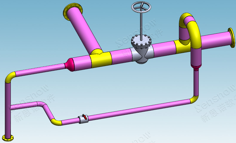 此处的双层开关类似于这段管道,当左侧主管道的阀门作为总开关时则可控制由此阀门流出液体至所有其它管道出口处,而如果使用需求是仅需让下方管道流出液体,则只需开启下方管道中的小阀门即可让液体从指定管道流出而无需开启总阀门。