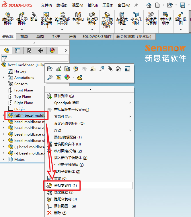 如何正确替换子件使其达到设计更改的结果?必然也是需要使用"替换",但不是通过 Windows 资源管理器来替换,而是使用SOLIDWORKS 程序来替换,这才是正确的工作流。