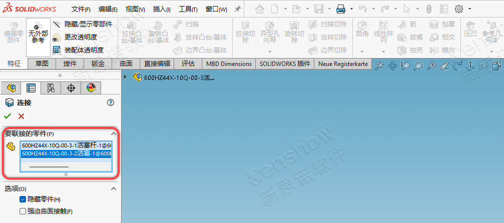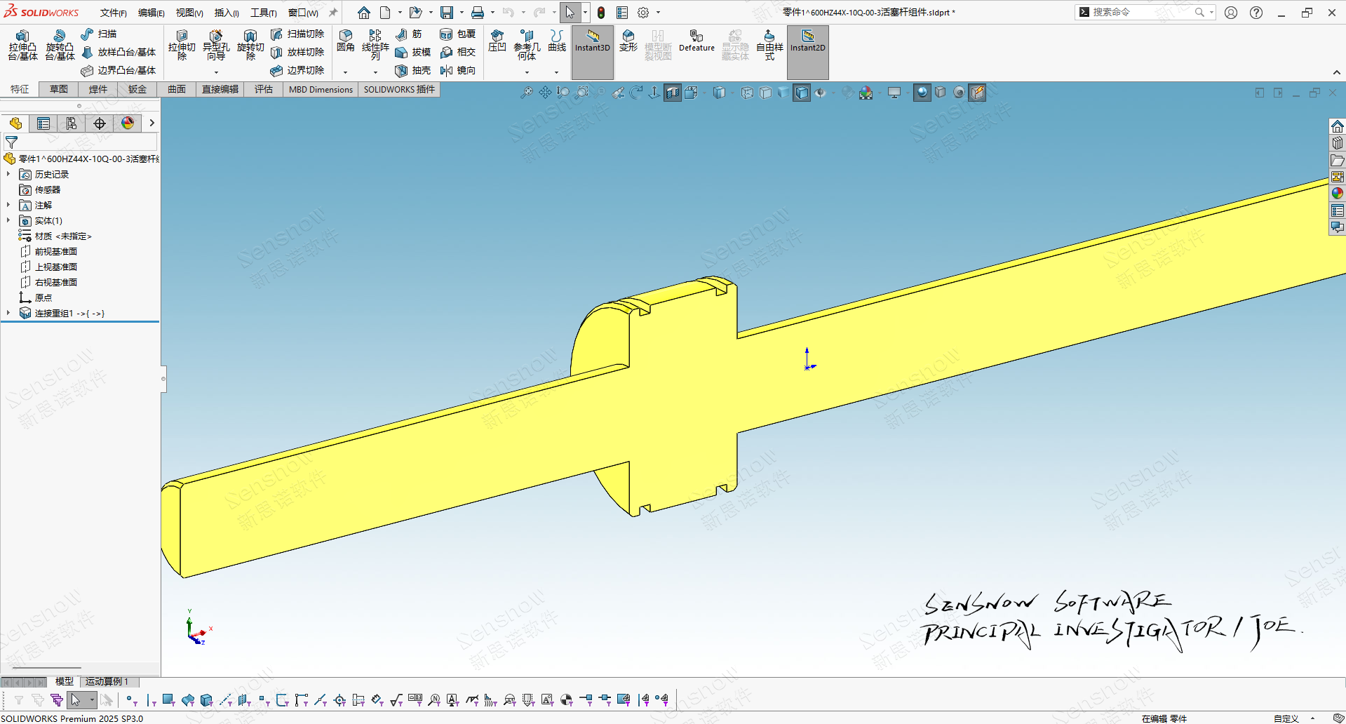 我们在设计树中找到新插入的零件,在装配体中使用自顶向下的方式编辑此零件,从而在装配体中进入零件的编辑状态。