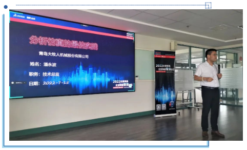 不仅如此,潘总还在下半场的会议中带来了“分析仿真的最佳实践”这一主题演讲,介绍了SOLIDWORKS Simulation以及“设计仿真一体化”这一理念,结合实际工程案例向大家分享了如何通过仿真软件快速的从三维模型生成一个精确的仿真结果。